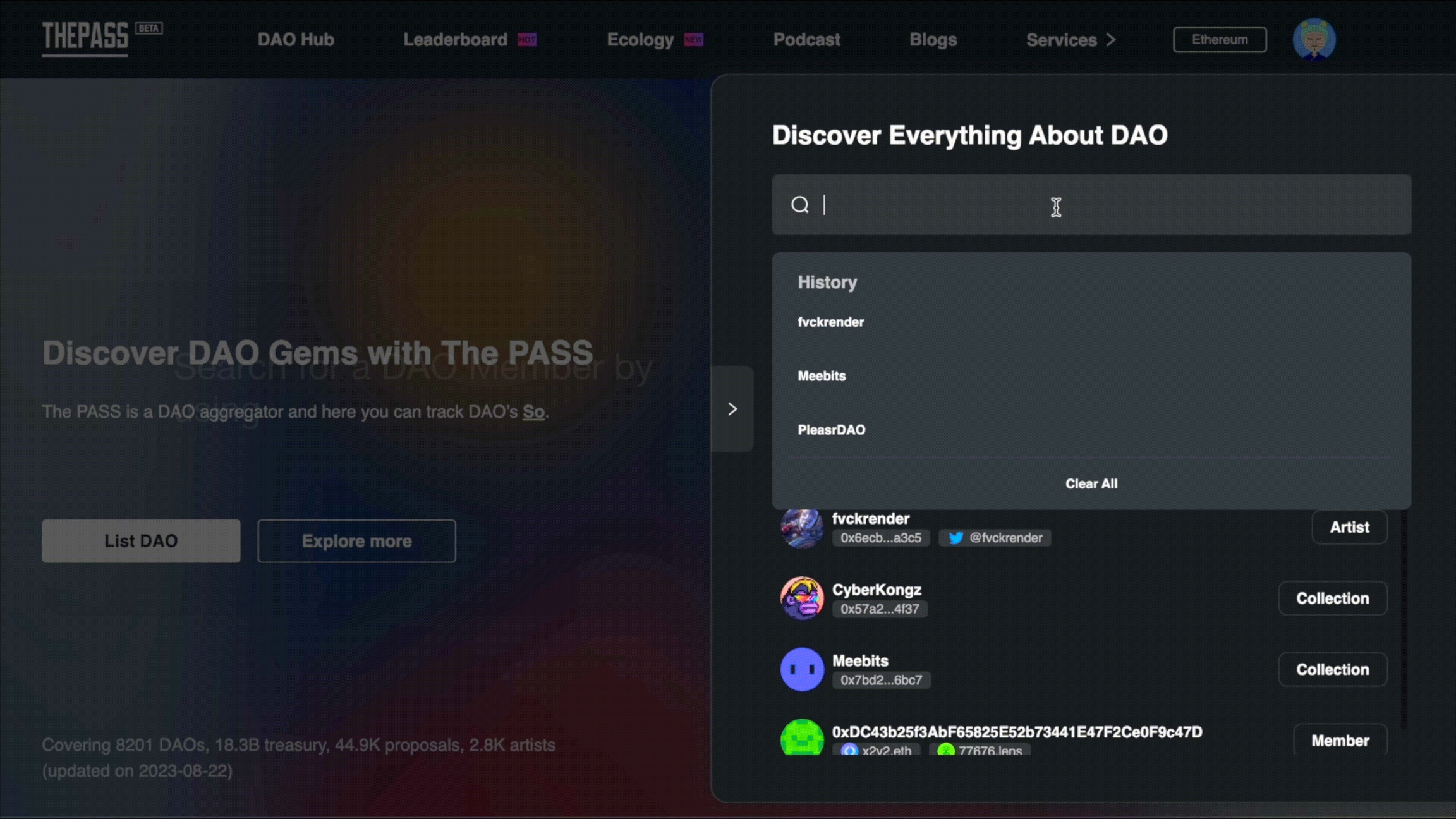 DAOBase’s comprehensive DAO search engine empowers users with a comprehensive understanding of the DAO world. Whether you’re seeking DAO projects, exploring artists and their creations, or delving into member activities, this search engine offers detailed information and data to enhance your participation in the dynamic DAO ecosystem.