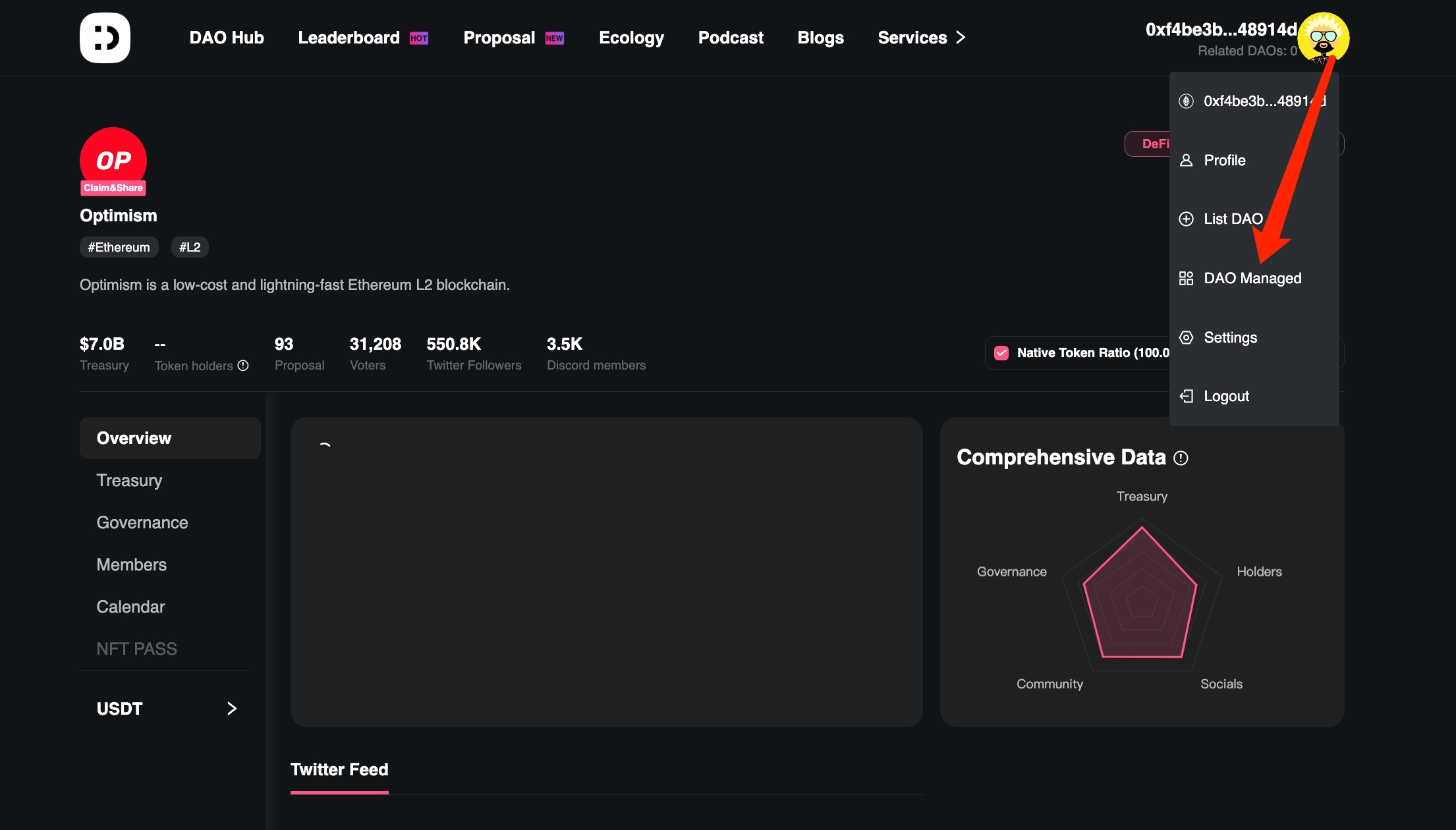 DAO의 아바타를 클릭하면 DAO의 홈 화면으로 이동합니다.
