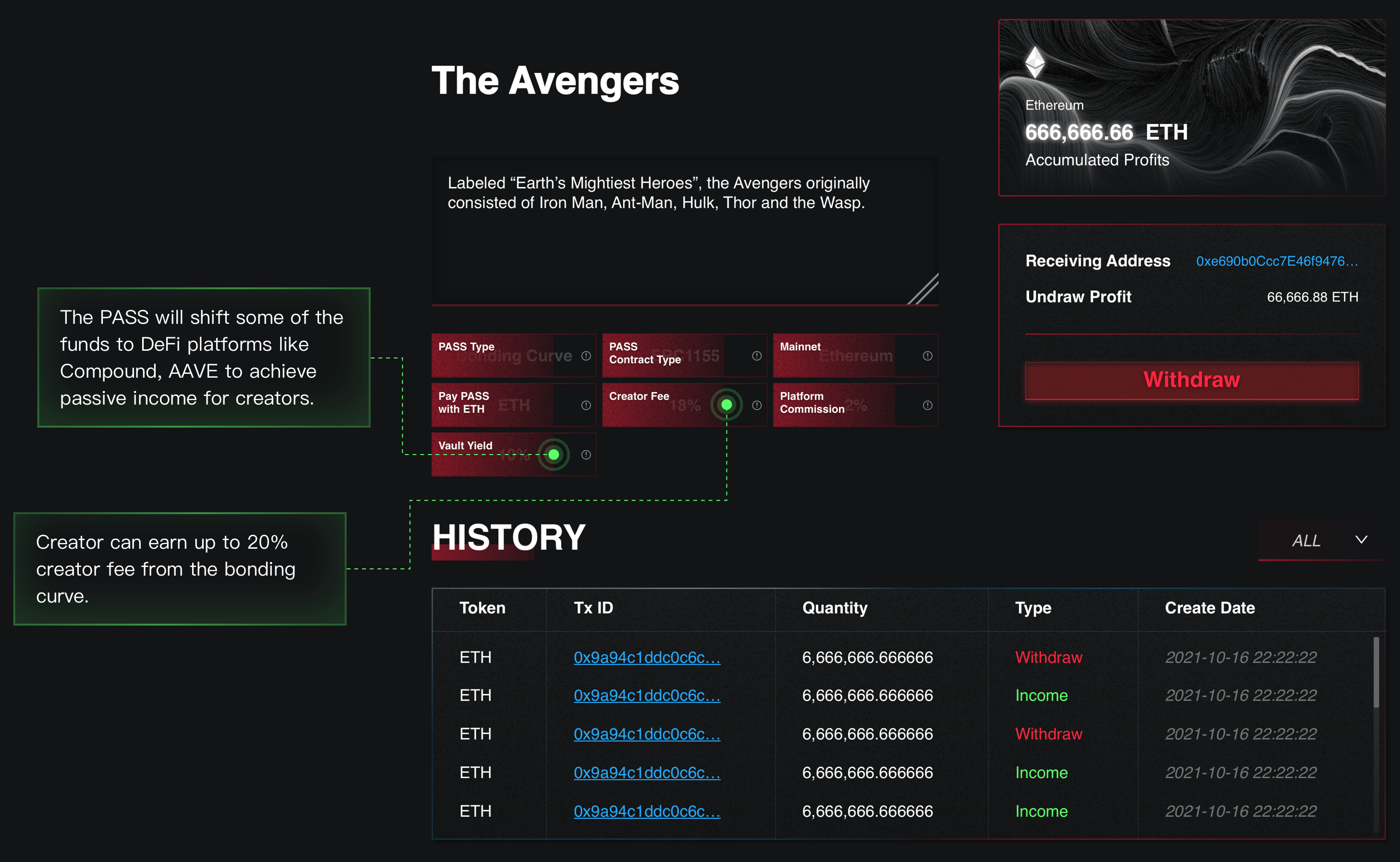 한편, 모든 참여자에게 최대의 혜택을 제공하기 위해, The PASS는 일부 자금을 Compound, AAVE와 같은 DeFi 플랫폼에 분산 투자하여 멀티체인 생태계 내에서 크리에이터에게 수동적 수익(passive income)을 창출합니다. 이렇게 해서 크리에이터는 PASS 판매 수익과 본딩 커브 금고에서 발생하는 이자 수익을 동시에 누릴 수 있습니다.